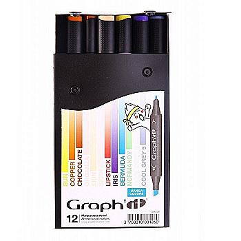 Набір двосторонніх маркерів, Відтінки теплого сірого (12 шт.), GI00127 Graph`it