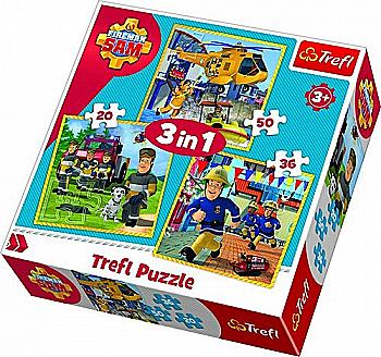 Пазл "3 в 1" - Пожежник Сем у дії, Prism A&D Fireman Sam, Trefl, 34844