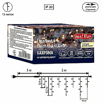 Електрогірлянда Yes! Fun Бахрома 84 LED, тепло-біла, 2 м, статична, конектор, 974846