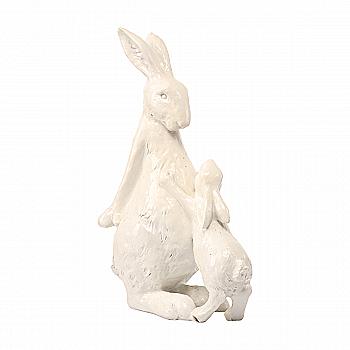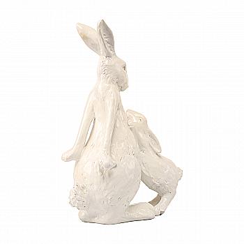 Фігурка декоративна "Заєць з зайченям" 35,4 см, колір - білий глянець, 887-505