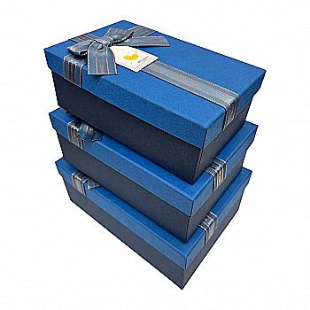 Подарункова коробка прямокутна, синя з білою смугою та бантом, 23*16*9,5 см, 110340043