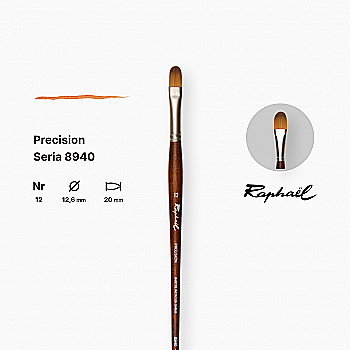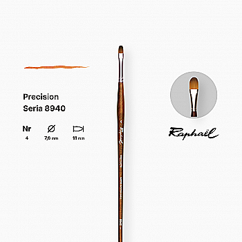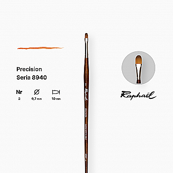 Пензель синтетика овальна "Raphael" Precision, №8, для акрилу та олії, довга ручка, 8940.8
