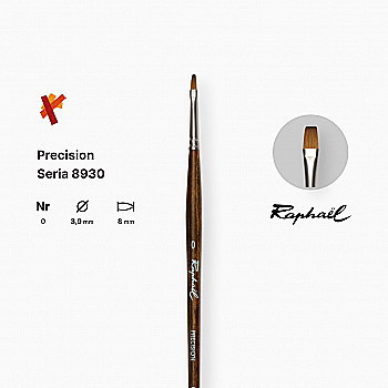 Пензель синтетика плоска "Raphael" Precision, №0, для акрилу та олії, довга ручка, 8930