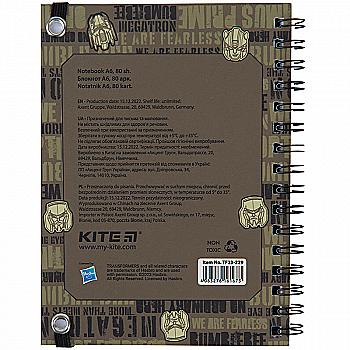 Блокнот А6, 80 арк."Transformers", вирубка, спіраль, TF23-229