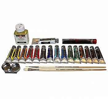 Набір олійних фарб Rembrandt, 15 туб фарби +пензлі, +доп.матеріали., дер.коробка, Royal Talens