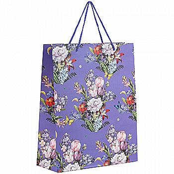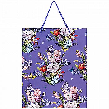 Подарункова коробка кругла, квітковий принт з блакитним бантом, 20*20*11 см, 250305503