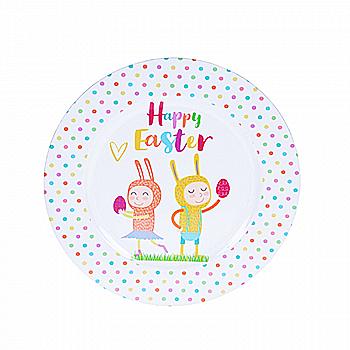 Тарілка великодня кругла 33 см із кольоровим принтом, білий (4 види в асорт.), AJX500030