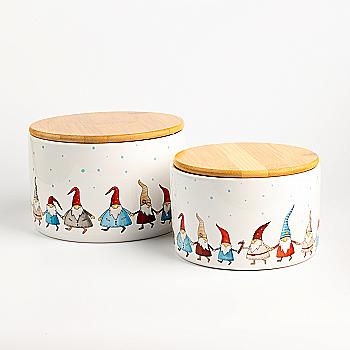 Баночка новорічна керамічна для сипких "Viggo" h=15 см/d=18 см, біло-черв. (2 диз.), 2002750