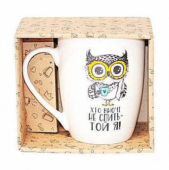 Чашка "Хто вночі не спить" (сова) капучіно, 360 мл + подарункова коробка Kvarta, 1731