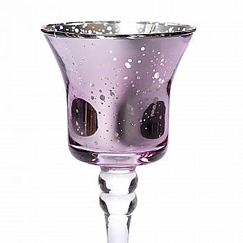 Свічник декоративний скляний "Muza" на підставці h=17 см, лакован., рожеві кольори (3 види), 1017292