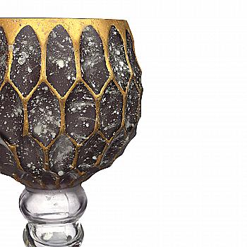 Свічник декоративний металевий "Topas" h=13 см/d=18 см, темно-золотий, 9824468/1014457