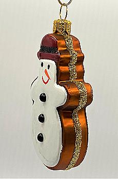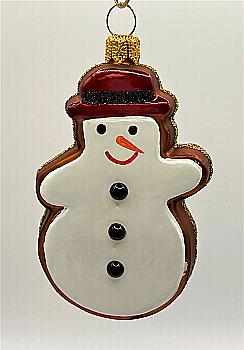 Ялинкова прикраса ручним розписом скляна Пряниковий сніговик 9 см (подар.уп.), A1874G
