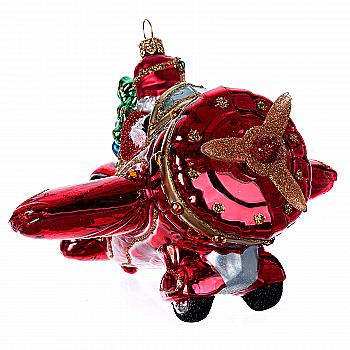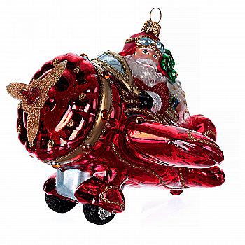 Ялинкова прикраса ручним розписом скляна Літаючий Санта в літаку 12,7 см (подар.уп.), A2200