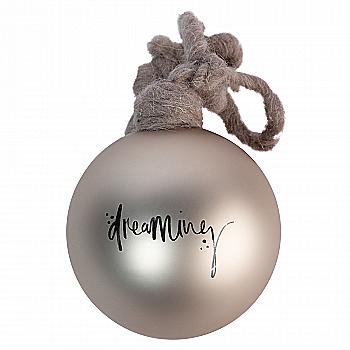 Підвіска новорічна Куля скляна сіра 10 см з вями, 9765153 ТМ "A&G"