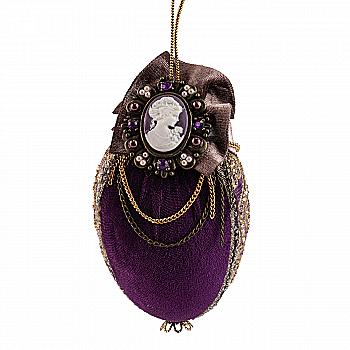Куля ялинкова 10 см, рельєфної форми з декором з оксамиту, темно-зелений з античним золотом, 118-131