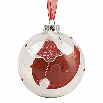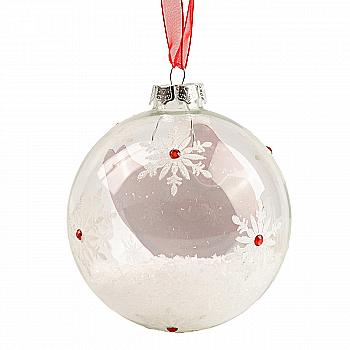 Підвіска новорічна Куля скляна біло-червона 10 см, 94235