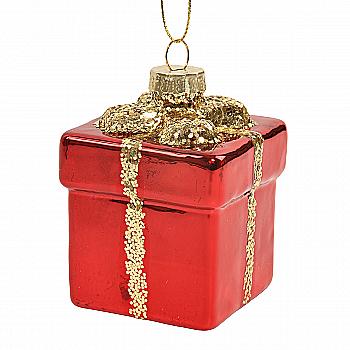 Ялинкова прикраса "Подарунок червоний із золотою стрічкою" 6*6*7,3 см, YQ1409254