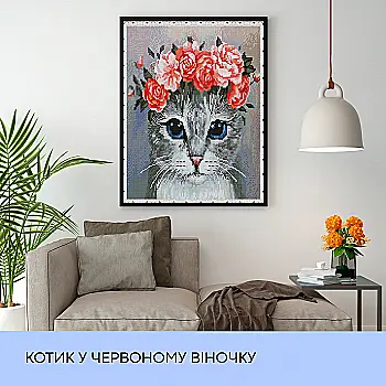 Набір з алмазною мозаїкою "Котик у червоному віночку", 40*50 см, IDEA2-CK3671, ТМ "99IDEAS"