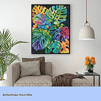 Набір з алмазною мозаїкою "Кольорова монстера" 40*50 см, IDEA2-CK6527, ТМ "99IDEAS"