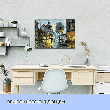 Набір з алмазною мозаїкою "Вечірнє місто під дощем", 40*50 см, IDEA2-CK2429, ТМ "99IDEAS"