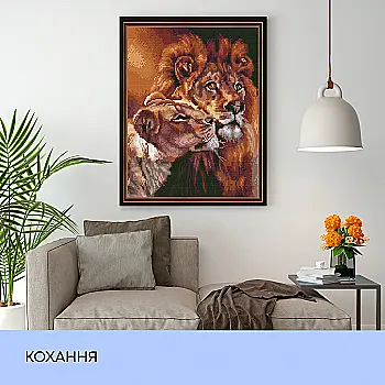 Набір з алмазною мозаїкою "Лев з левеням" 40*50 см, GF477, ТМ "99IDEAS"