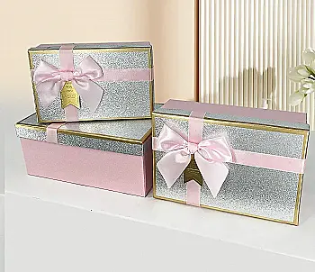 Подарункова коробка прямокутна, "Срібний глітер" з бантом, 23*16*9,5 см, 1103402813