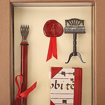 Подарунковий набір д/каліграфії "Музика" в коробці (тримач пера,чорнило,міні-тромбон,аксес.), 7744