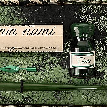 Подарунковий набір д/каліграфії в коробці (дерев.тримач пера, 3 накін.,пергам.,чорнило 10 мл.), 7751