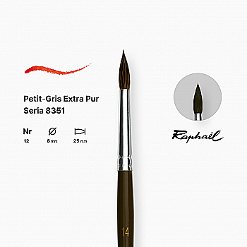Пензель синтетика кругла (імітація білки) "Raphael" Petit Gris №12, довга ручка, 8351.12