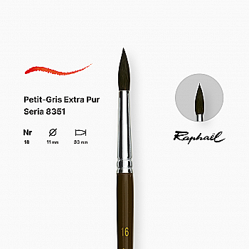 Пензель синтетика кругла (імітація білки) "Raphael" Petit Gris №16, довга ручка, 8351.16