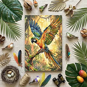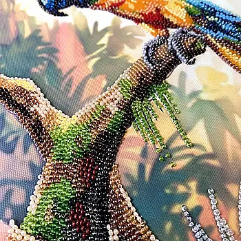 Набор для вышивки бисером на натуральном художественном холсте "Красный попугай", AB-970