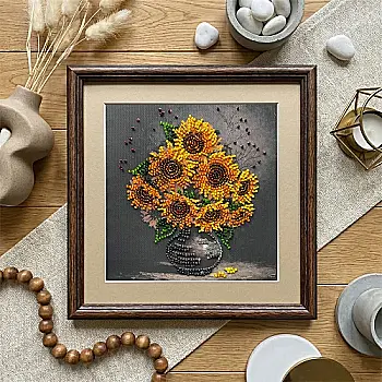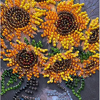 Набор-мини для вышивки бисером на натуральном холсте "Домашние подсолнечники", AM-269