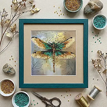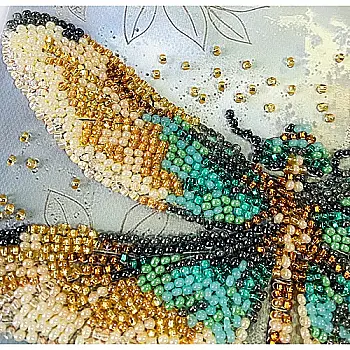 Набор-мини для вышивки бисером на натуральном художественном холсте "Изумрудные крылья", AM-268