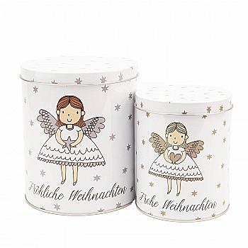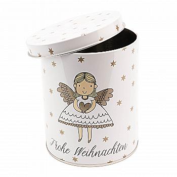 Баночка новогодняя жестяная для сыпучих "Molly" h=13 см/d=11 см, белый с золотым рисунком (2 вида), 9708809/2014241