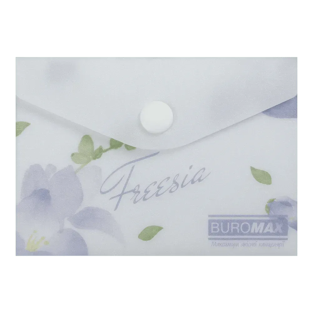 Папка-конверт на кнопке серии ARABESKI от BUROMAX подходит для хранения и транспортировки визиток, пластиковых карт, пропусков или проездных билетов. Папка выполнена в нежном цветочном дизайне с изысканным золотым фольгированием, непременно будет привлекать и вдохновлять! Папка пригодится сотрудникам офисных и бизнес центров, студентам и школьникам, защитит содержимое от смятия, намокания или загрязнения.