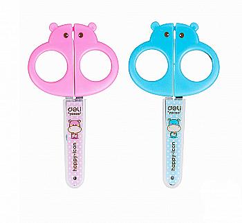 Ножницы Deli 6032 ASS 12,8 см пл / р, "Гиппопотам" детские в пласт. чехле (48122)