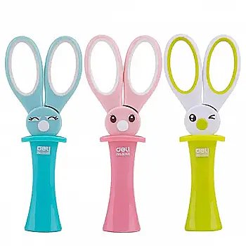 Ножницы Deli 6065 13см пл/с детские из резины вст "Заяц в шляпе", микс (64059)