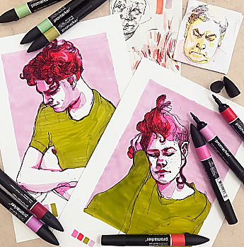 Набор маркеров двусторонних ProMarker "Black and Greys" 24шт. в пенале, 0290081 W&N