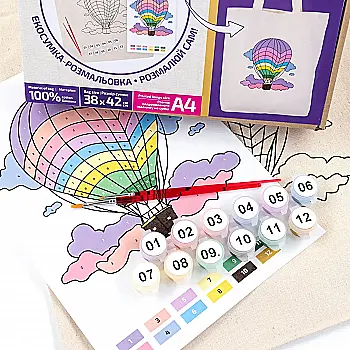 Набор, экосумка-раскраска "Полет над облаками", хлопок 220 г/м2, 38*42 см, ROSA Talent