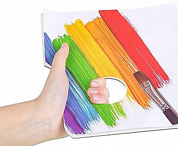 Эргономичная палитра для рисования имеет отверстие для большого пальца. Она облегчает работу с красками, кисточкой. Вы держите изделие перед собой и ловко добиваетесь желаемого оттенка. Современные компактные досочки можно разделить на 2 типа: