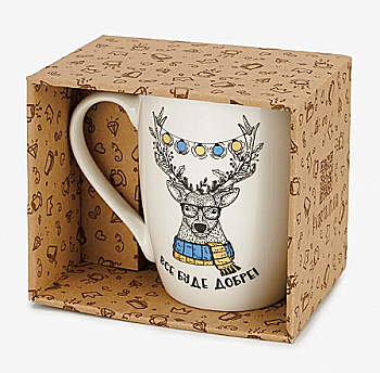 Чашка "Олень" капучино, 360 мл + подарочная подарочная коробка Kvarta, 2119