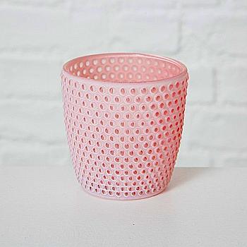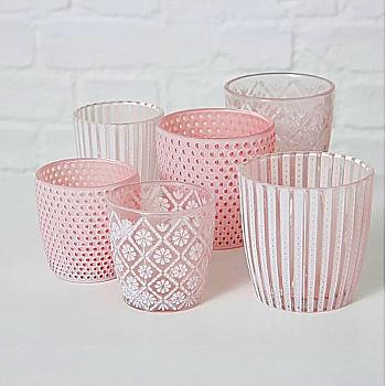 Подсвечник декоративный стеклянный "Patty" h=9 см/d=9 см, лакированый, бело-розовый (3 вида), 9823256/1011517