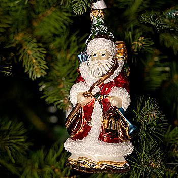 Елочное украшение Санта красный с фонарем и мешком подарков, F1714-18866
