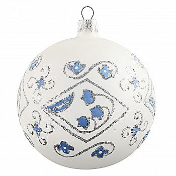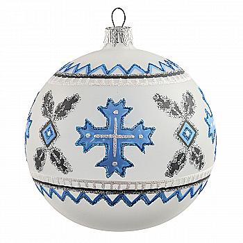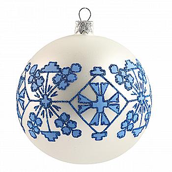 Шар елочный 8 см, с рельефом и декором из глиттера, морозная хвоя, 118-101