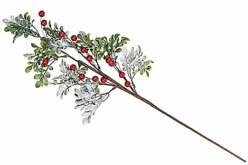 Декоративная Ветка с красными ягодами и листвой в инеи 17,5 см, 128-115