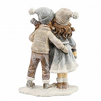 Фигура декоративная "Дети в меховых шапках" 19 см, серебро, 823-589