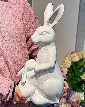 Фигурка декоративная "Заяц с зайчонком" 35,4 см, цвет - белый глянец, 887-505