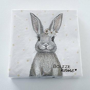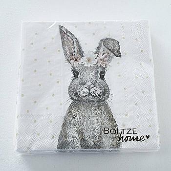 Салфетки бумажные пасхальные Зайчик "Bella" 17*17 см, 20 шт., бело-серый (3 вида), 2018171