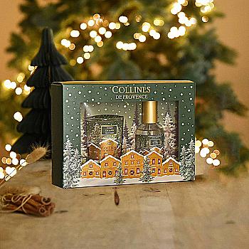Набор подарочный Collines de Provence: спрей для комнаты, свеча "Еловый лес", C3526FS