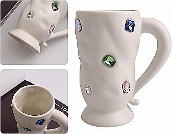 Чашка фарфоровая "Lovy" 330 мл в точку, белый с красным/золотым принтом (4 вида), 1012558
